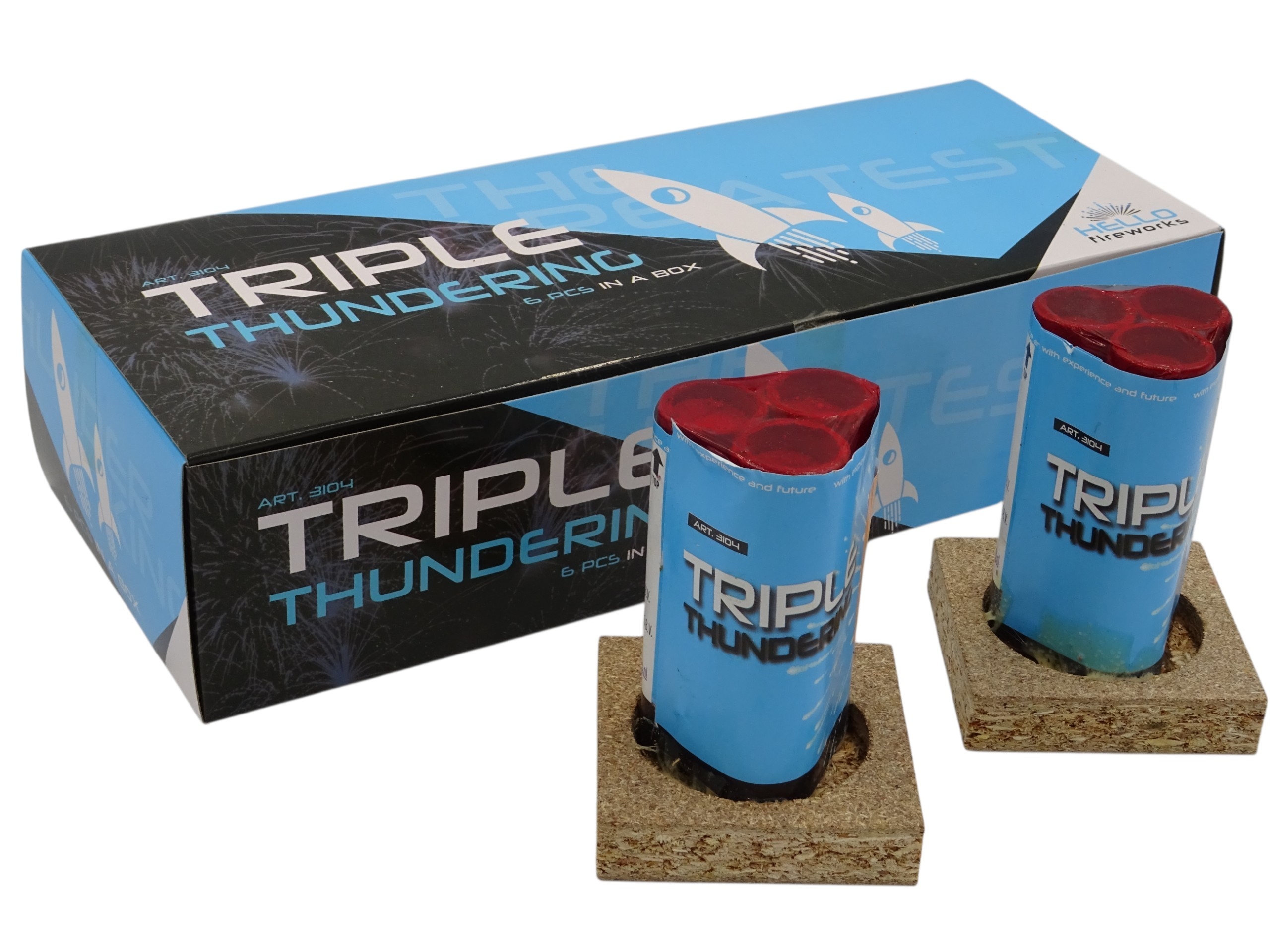 De drie tubes gaan tegelijktijdig af en zorgen voor 3 dikke titanium salute boeketten.